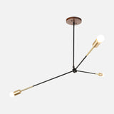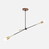 A mid-century inspired, handcrafted chandelier featuring wood and brass accents. All of our wood and brass components are meticulously hand-finished in-house.