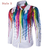 Men Shirts 3D Ink Printed Long Sleeve Autumn Spring Lapel Casual Hip Pop Slim Fit Fashion Paint Dress Shirts Top Plus Size 3XL