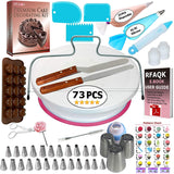 73 pcs Cake Decorating Supplies Kit for Beginners-1 Turntable stand-24 Numbered icing tips with pattern chart and E.Book-1 Cake Leveler-Straight & Angled Spatula-3 Russian Piping nozzles-Baking tools
