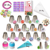 RFAQK - 50 Pcs Russian Piping Tips Set- 15 Numbered, Easy to Use Icing Nozzles - 2 Leaf Tips - 2 Couplers -30 Icing Bags -1 Pastry Bag- Pattern Chart,E.Book User Guide, cupcake decorating Kit supplies