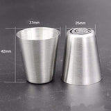 ● ✅ LEAF TIPS - MAKE IT MORE BEAUTIFUL: Use 2 Leaf Tip to fill the gap between piped flowers, also use these tips to decorate your cakes make them more unique, beautiful & attractive. ✅ EXTRA LARGE RUSSIAN TIPS -FDA APPROVED. Russian tips are Extra Large laser tips made of FDA Approved Material 304 Steel which insures ✔ Durability ✔ High Rust Resistance ✔ Smooth Edges, produce beautiful flowers without ever losing shape ✔ Safe to use by Kids ✔ Safe to contact with food.